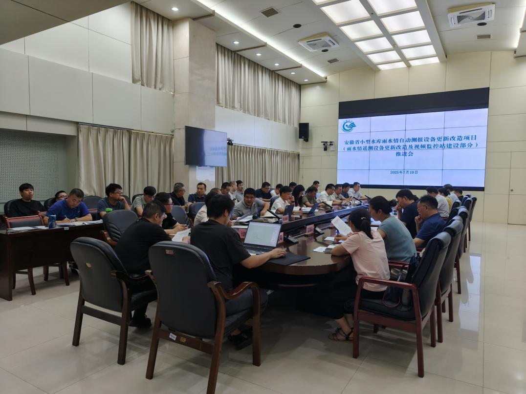 2025年7月10日下午,安徽省小型水庫雨水情自動測報設備更新改造項目(雨水情遙測設備更新改造及視頻監控站建設部分)推進會在安徽省水文局召開。會議由省水文局主持,省水利廳、各市水文局相關負責同志,以及施工(一包、二包、三包)、全過程咨詢等單位代表參會。
